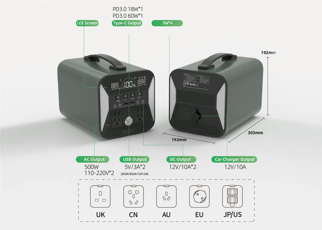 Sunpok 500W 휴대용 전원 공급 장치의 특징