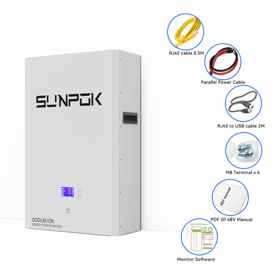 선포크 에너지의 나트륨 배터리 (나트륨 배터리 또는 나 이온 배터리로도 알려져 있습니다) 는 높은 안전성, 빠른 충전 시간 및 높은 용량을 제공합니다. MSDS, UN38로 인증되었습니다.3, ROHS, IEC62619 및 CE, 48V/51.2V의 명소 전압을 가지고 있습니다.